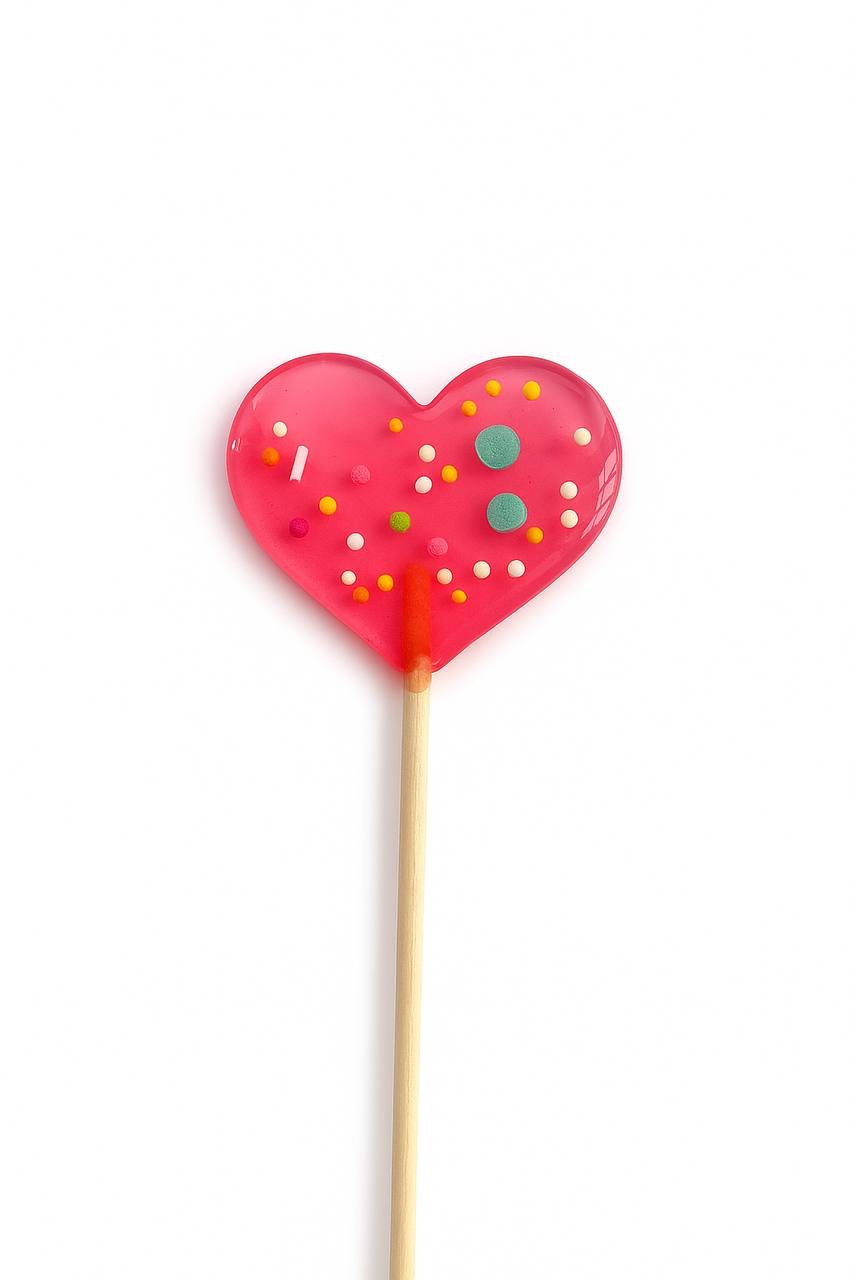 Леденец СЕРДЦЕ МИДИ, прозрачное розовое